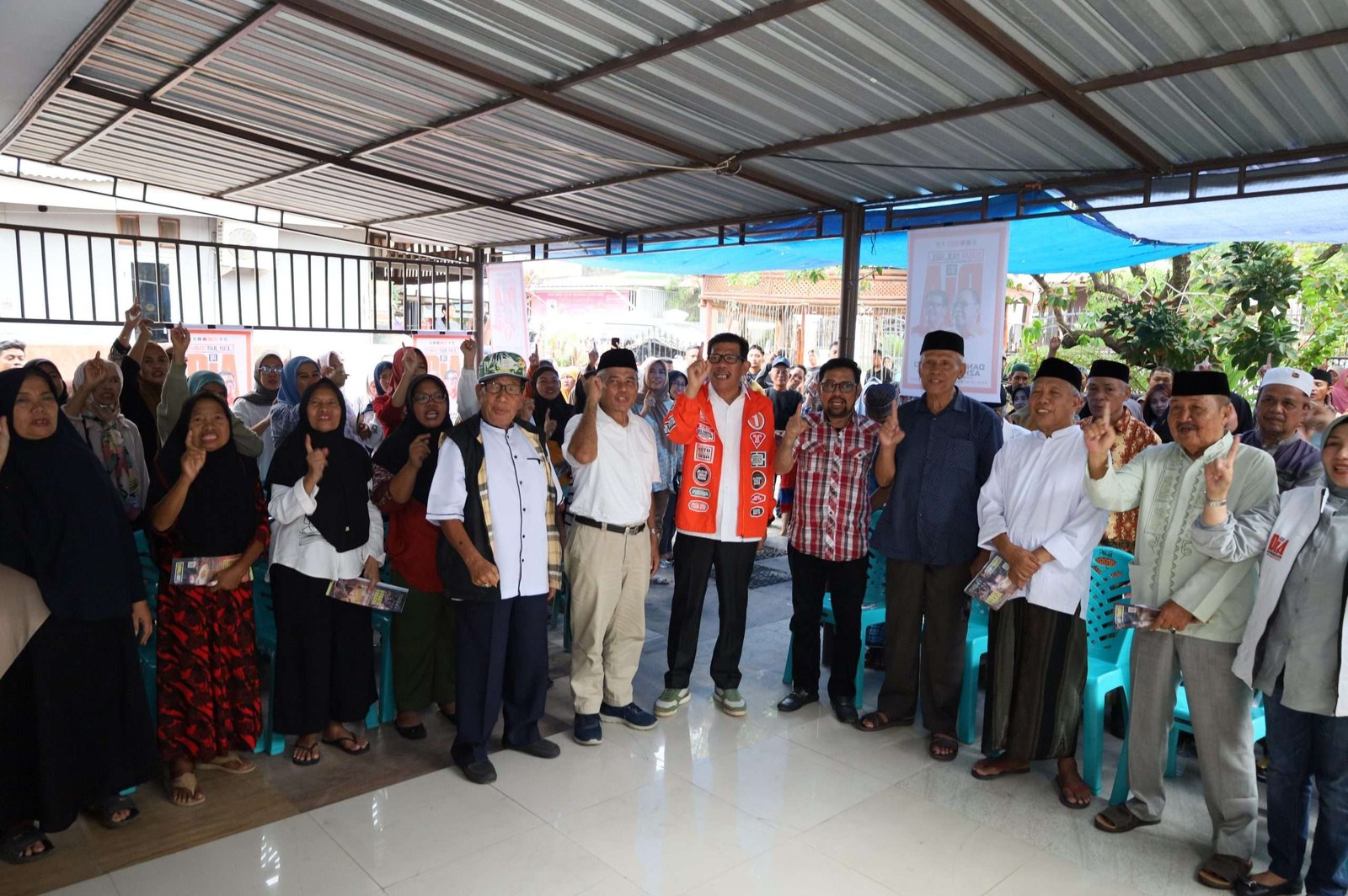 Azhar dan rombongan yang baru tiba, langsung disambut yel-yel DIA dan AURAMA’ “menang-menang” dari relawan yang memadati acara.