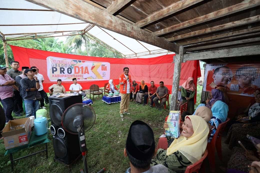 Barru, KarebaDIA – Calon Wakil Gubernur Sulsel nomor urut 1, Azhar Arsyad menemui relawan ProD1A di Kab. Barru, Kec. Soppeng Riaja, Kelurahan Kiru-Kiru, Jumat (15/11/2024) siang.