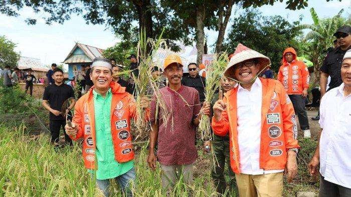 Sebelum menuju Barombong Gowa, Azhar dan Daeng Ical secara simbolis memulai panen perdana tanaman padi milik warga Borongbila Sengka.
