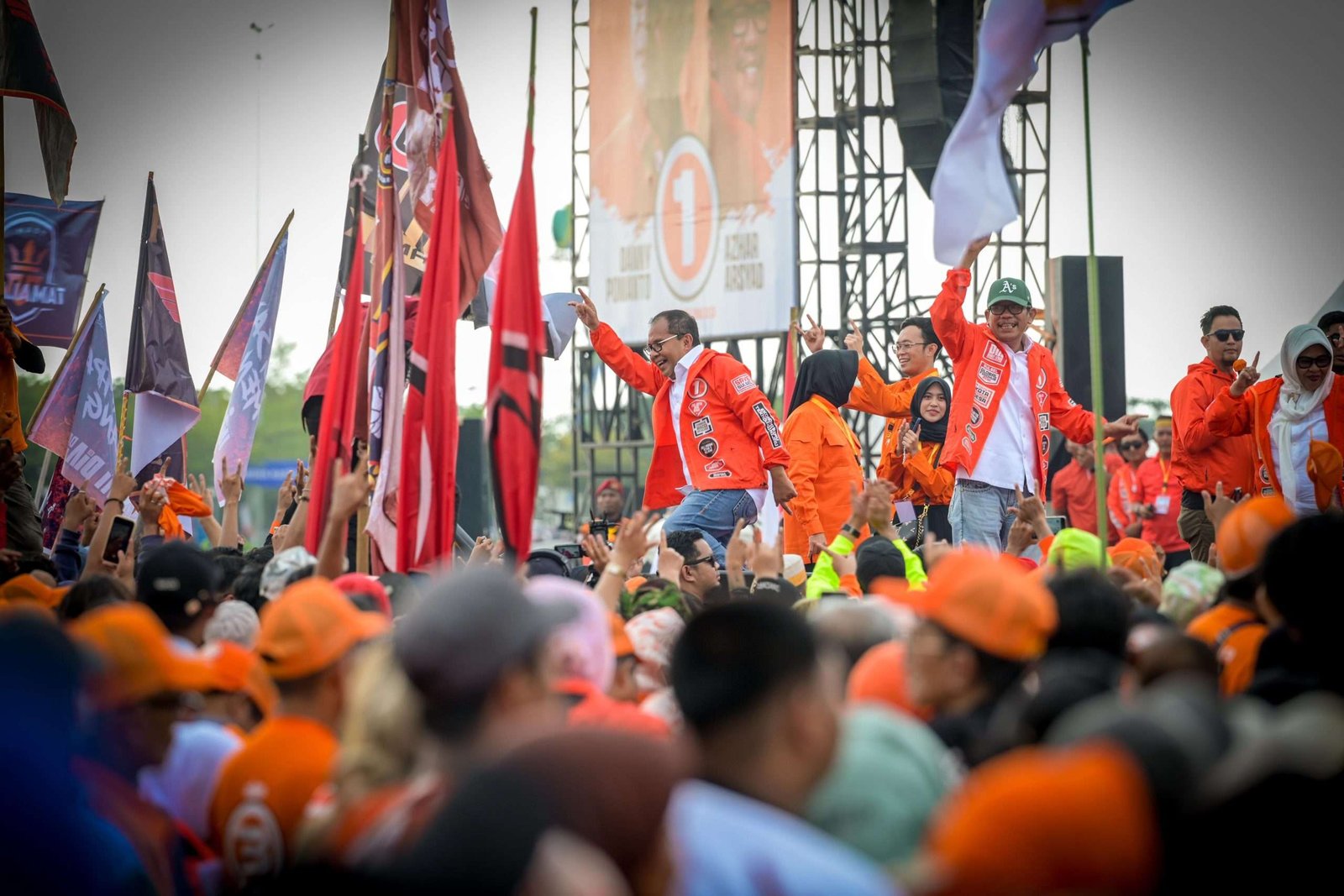 Di kampanye akbar Danny-Azhar kali ini, dibanjiri puluhan ribu pendukung yang mengenakan atribut oranye, dan atribut partai pengusung dan pendukung.